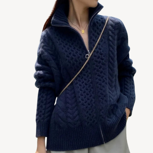 Elarova | Zopfmuster-Pullover mit Reißverschluss für Damen