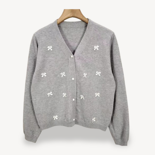 Elarova | Damen-Cardigan mit Schleifendetail und V-Ausschnitt