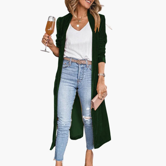 Elarova | Damen Long Strickjacke mit offener Front und geradem Saum