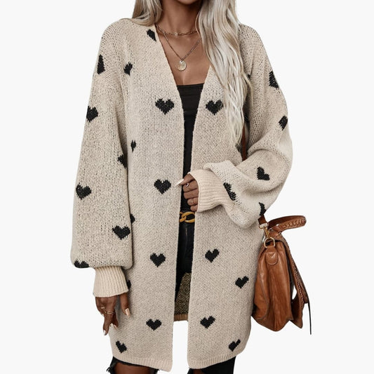 Elarova | Damen Strickjacke mit Knopfleiste und Herzmuster