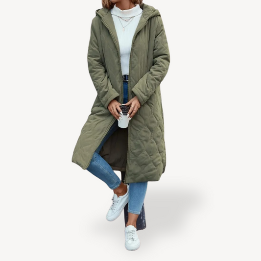 Elarova | Grüner gesteppter Wintermantel mit Kapuze für Damen