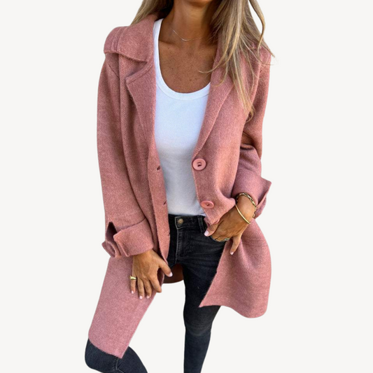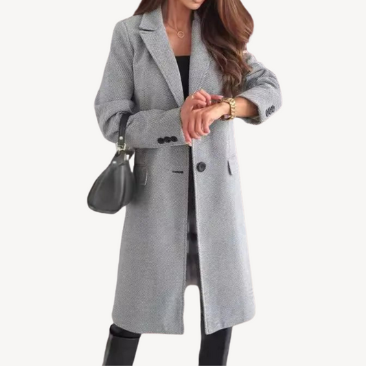 Elarova | Langer Mantel aus Wollmischung für Damen mit Knopfleiste vorne
