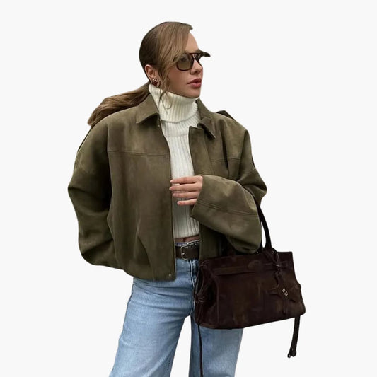 Elarova | Damen Cropped Jacke mit Klappentaschen und Reißverschluss