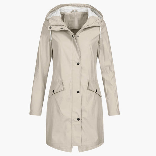 Elarova | Damen Langregenjacke mit Kapuze und Druckknopfverschluss