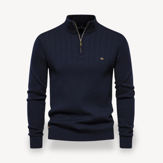 Elarova | Herrenpullover aus gerippter Baumwolle mit Reißverschluss