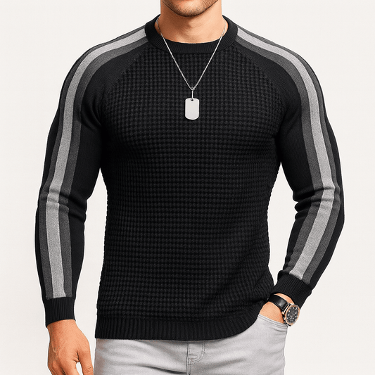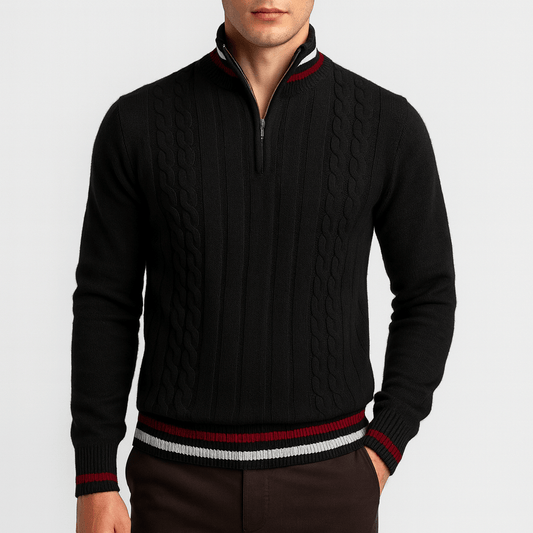 Elarova | Stylischer Herrenpullover mit Reißverschluss und Ellbogenflicken aus Leder