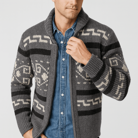 Elarova | Herren-Strickjacke mit Zopfmuster und Schalkragen
