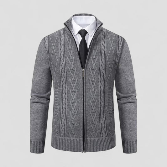 Elarova | Herren-Strickpullover aus Kaschmir mit durchgehendem Reißverschluss und strukturiertem Muster