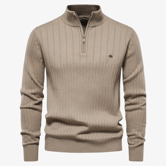 Elarova | Rippstrickpullover mit halbem Reißverschluss für Herren