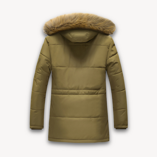 Elarova | Wasserdichter Parka-Mantel für Herren – Kapuze aus Kunstpelz
