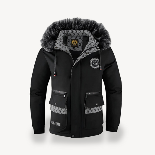 Elarova | Schwarz-weiße Parkajacke mit Kapuze für Herren