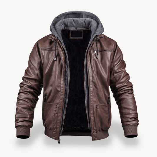 Elarova | Herren-Bomberjacke aus Kunstleder mit Kapuze