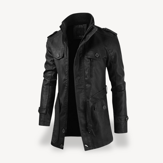 Elarova | Herren Kunstleder Lange Bikerjacke Lässiger Reißverschlussmantel