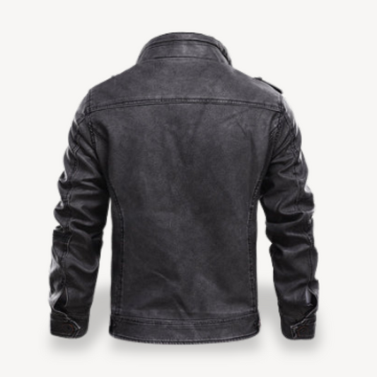 Elarova | Schwarze Bikerjacke aus Kunstleder für Herren, lässiger Reißverschlussmantel