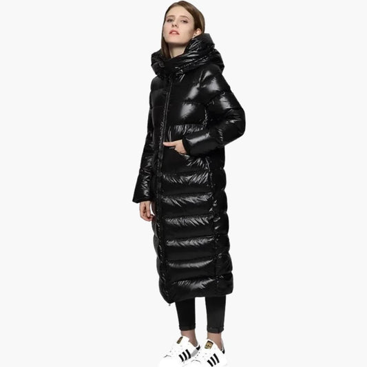 Elarova | Damen Lange Daunenjacke mit Reißverschluss und Kapuze