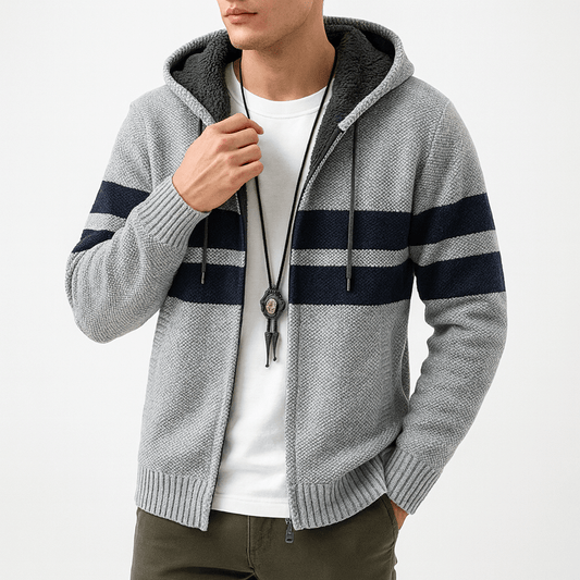 Elarova | Fleecegefütterter, gestreifter Kapuzenpullover mit Reißverschluss