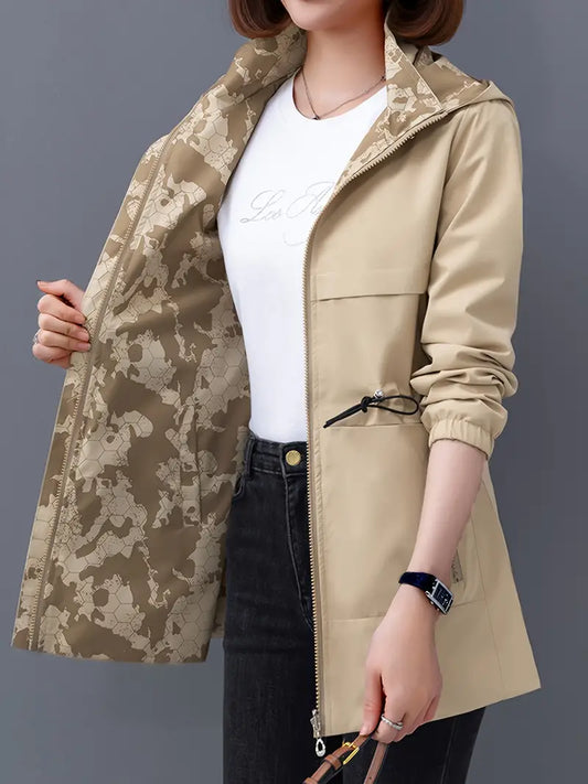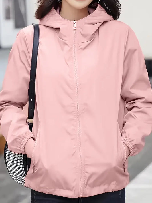 Damen Kapuzenjacke Elliora: Bequeme, einfarbige Polyesterjacke mit Reißverschluss